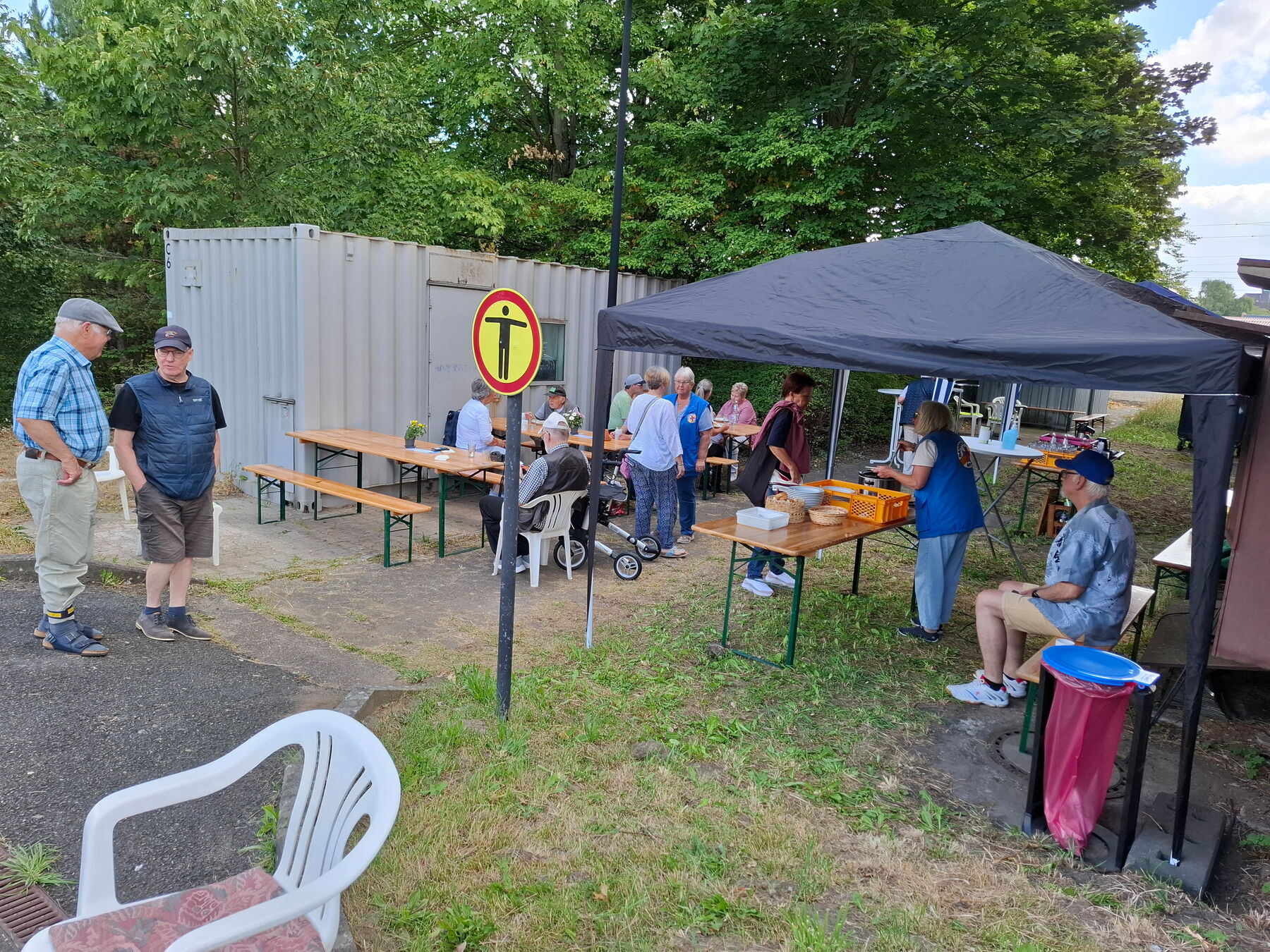 Um 7 Uhr begann der Aufbau von Tischen und Pavillons und es wurden Speisen und Getränke vorbereitet. Im Angebot war Kartoffelsuppe, verschiedene Kuchen, Kaffee und andere Getränke. Kurz vor 10 Uhr erschienen die ersten Gäste vom Seniorenheim Rosenmauer. Bis 15 Uhr war unser Tag der offenen Tür gut besucht. Auch der Landrat Heiko Blume beehrt uns an diesem Tag. Der Tag war ein großer Erfolg - Gäste und Mitarbeiter waren sehr zufrieden.